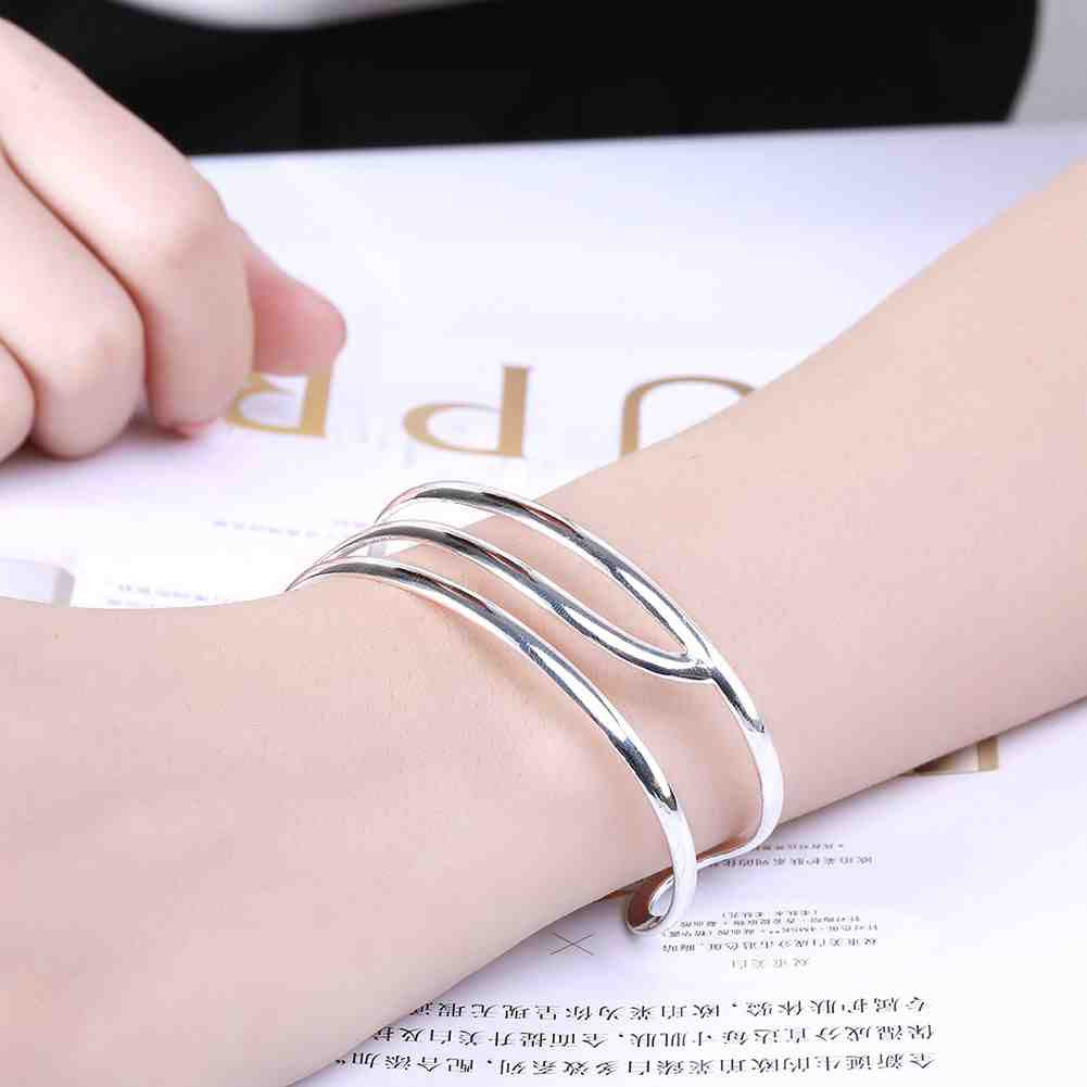 silver plated bangles Triple line women bracelet bijoux femme SMTB 46 ELY