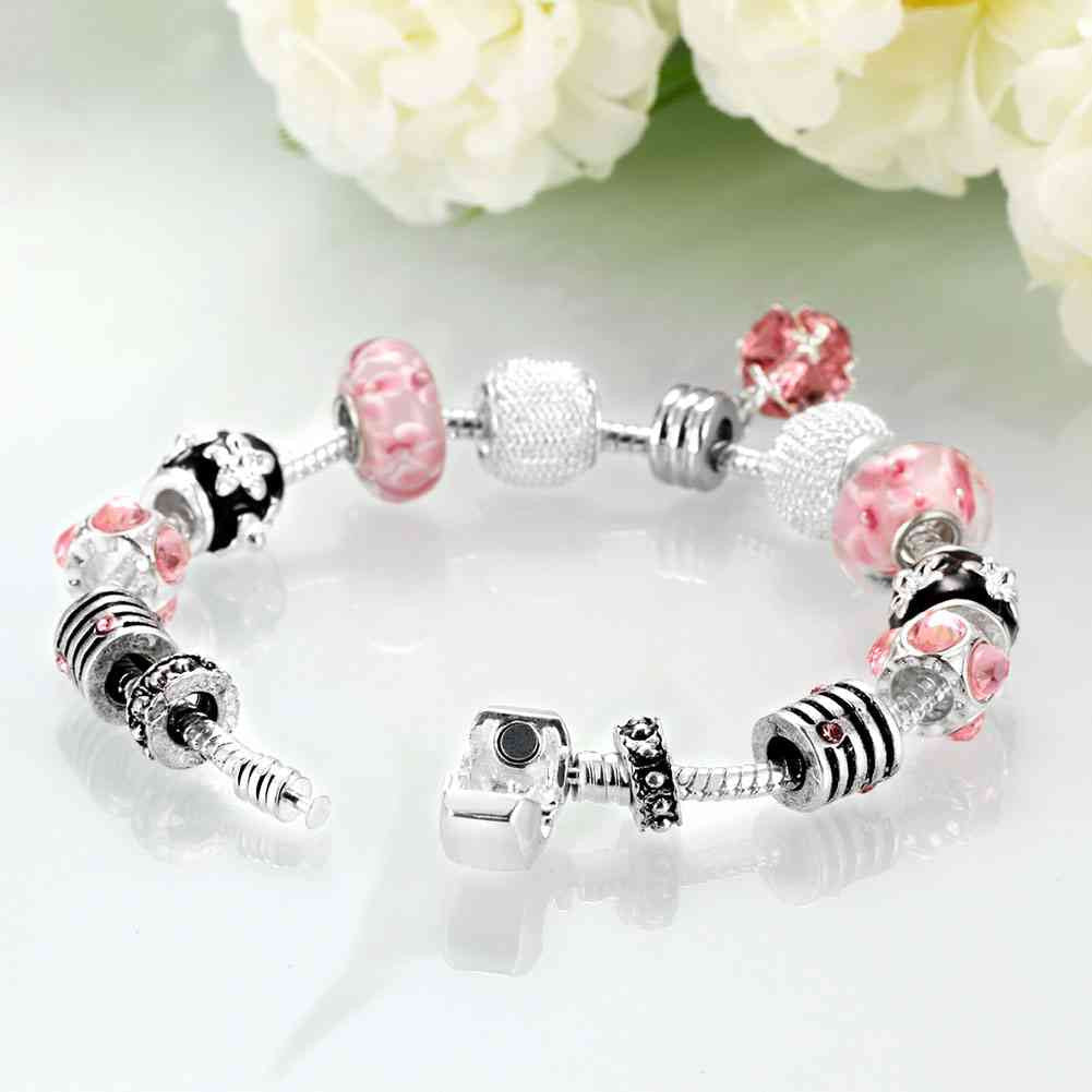 silver plated bracelet charms Pink ball pulseira masculina PFDH 37 ELY