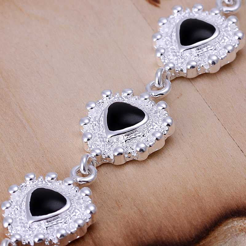 silver plated bracelet men Epoxy black triangle one direction wedding HBH 48 ELY