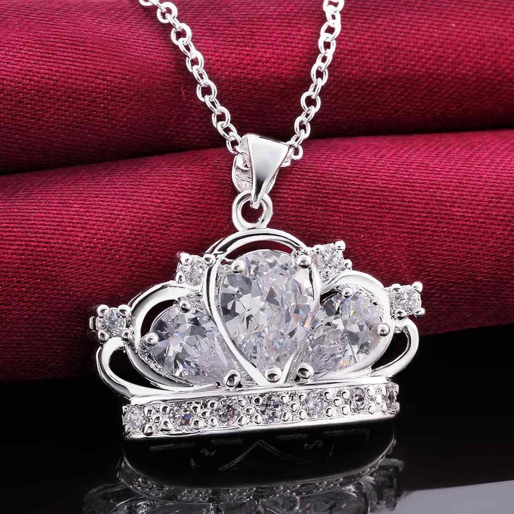 silver plated Chain big shine crown Necklaces Pendants Men jewelry 579 ELY