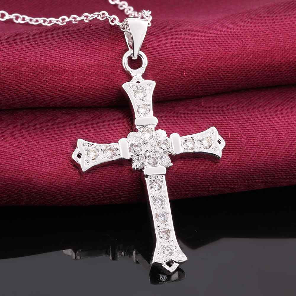 silver plated Chain cross class white Necklaces Pendants Men jewelry 633 ELY